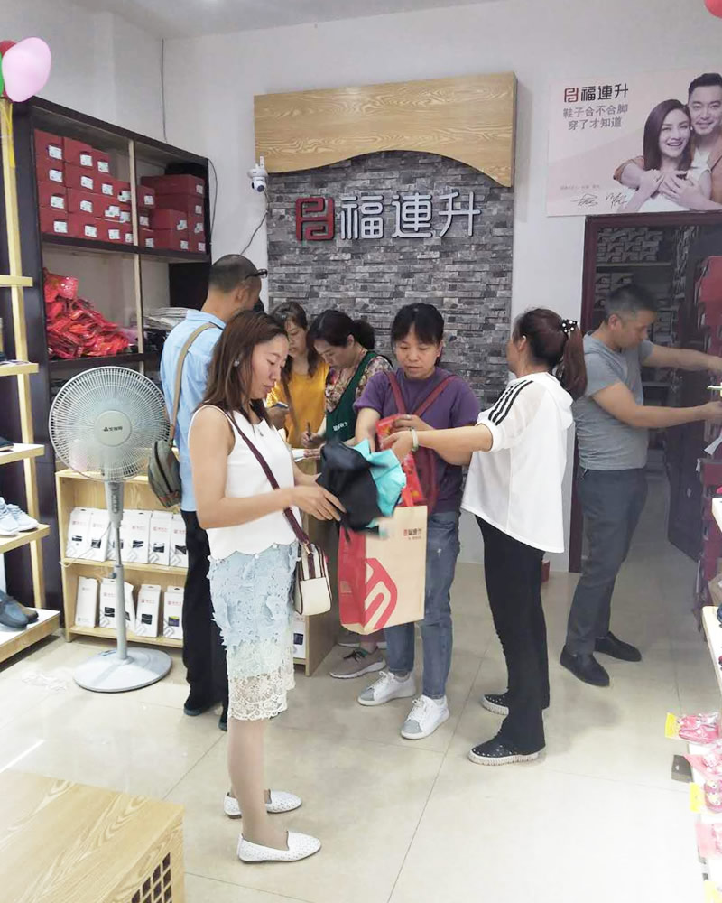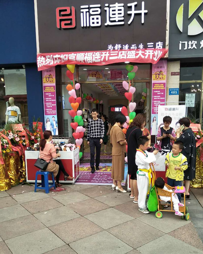 在此,福连升健康休闲中年鞋(原福连升(原福联升)老北京布鞋)全体员工祝贺:福连升中年鞋四川自贡市富顺3店开业大吉、生意红火、财源广进!诚邀各地有志之士加盟合作,共享辉煌!