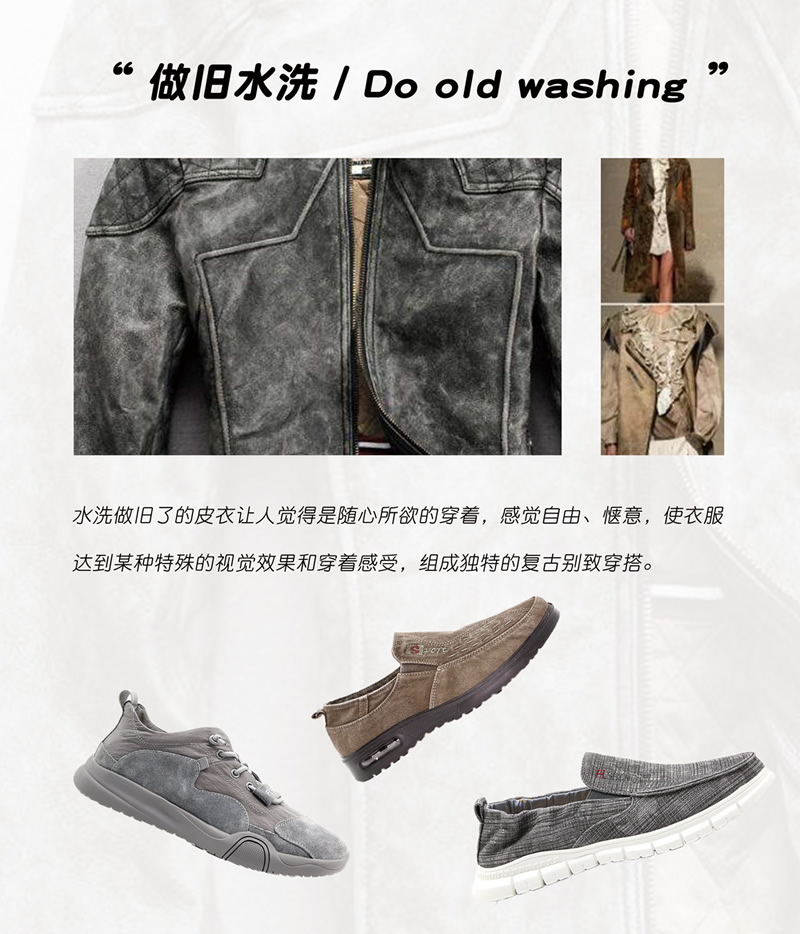 用“旧”“水洗”元素作为新时尚,是目前流行圈新式时尚趋势,用视觉享受展现生活释压的新态度和感受,别致而新意。
