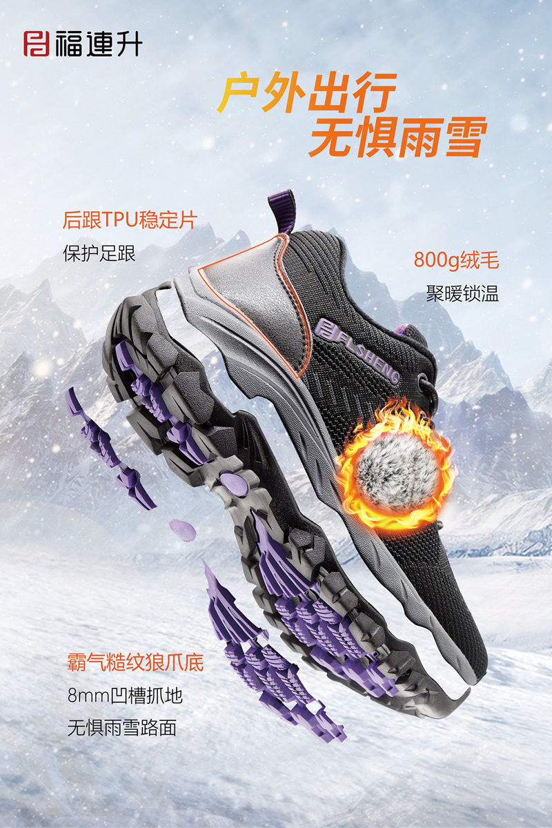 福连升冬季新品打破鞋品科技新思路,专业研发特别推出黑科技摩力磁震鞋、保温暖冬羊毛鞋、安全生活止滑鞋、无惧污渍防水鞋四大板块冬款新鞋品。