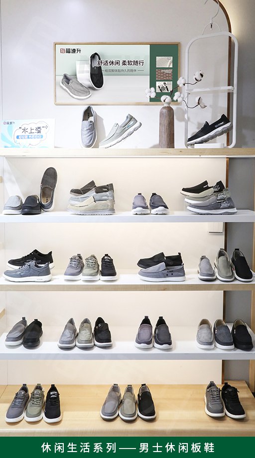 福连升2022春季店面陈列手册,用多个系列实际产品陈列照片详细讲解了福连升休闲鞋专卖店产品的陈列方法,为广大加盟商提供陈列参考。